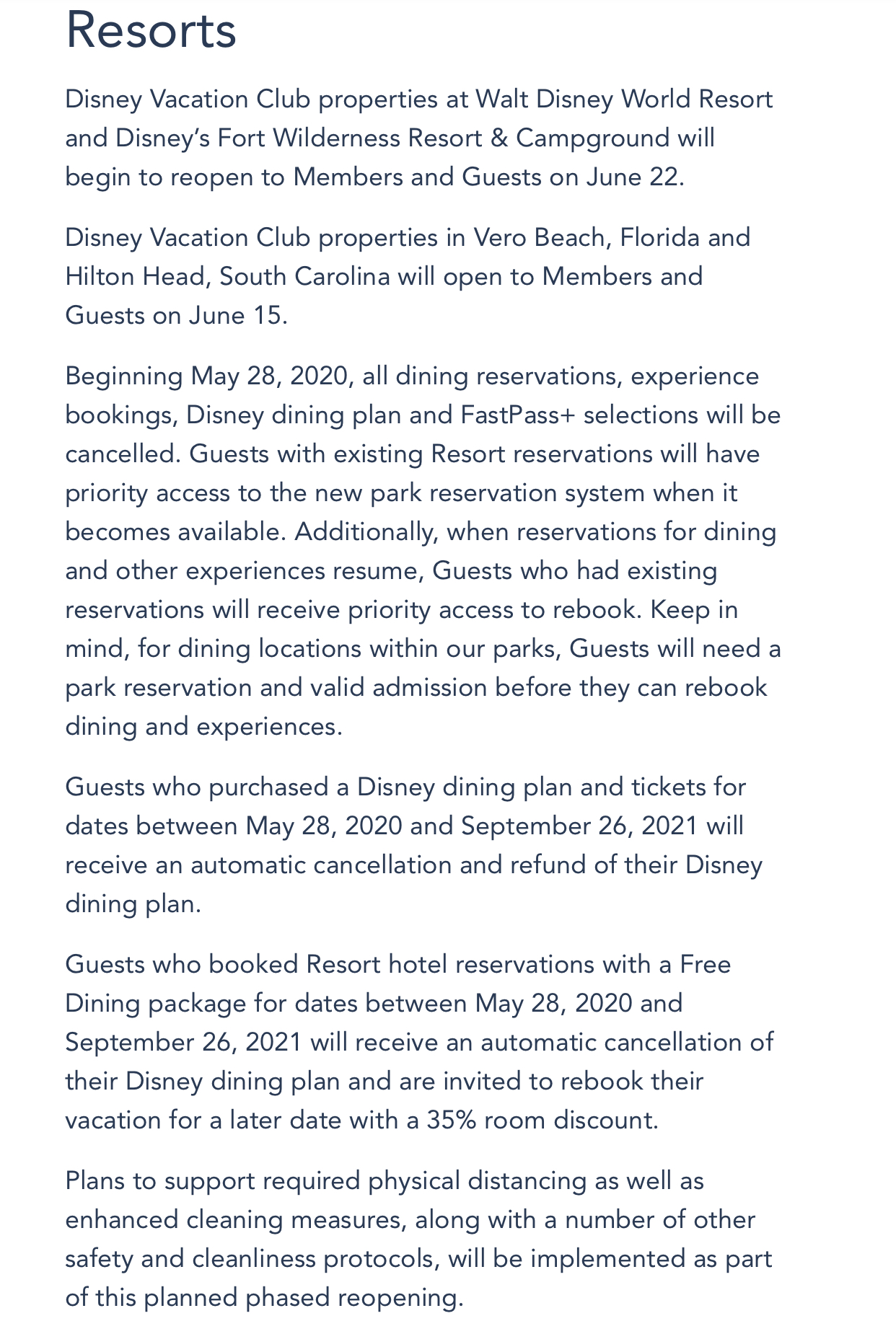 Guests who hold a resort reservation or a canceled dining reservation will be given priority rebooking once that is announced.