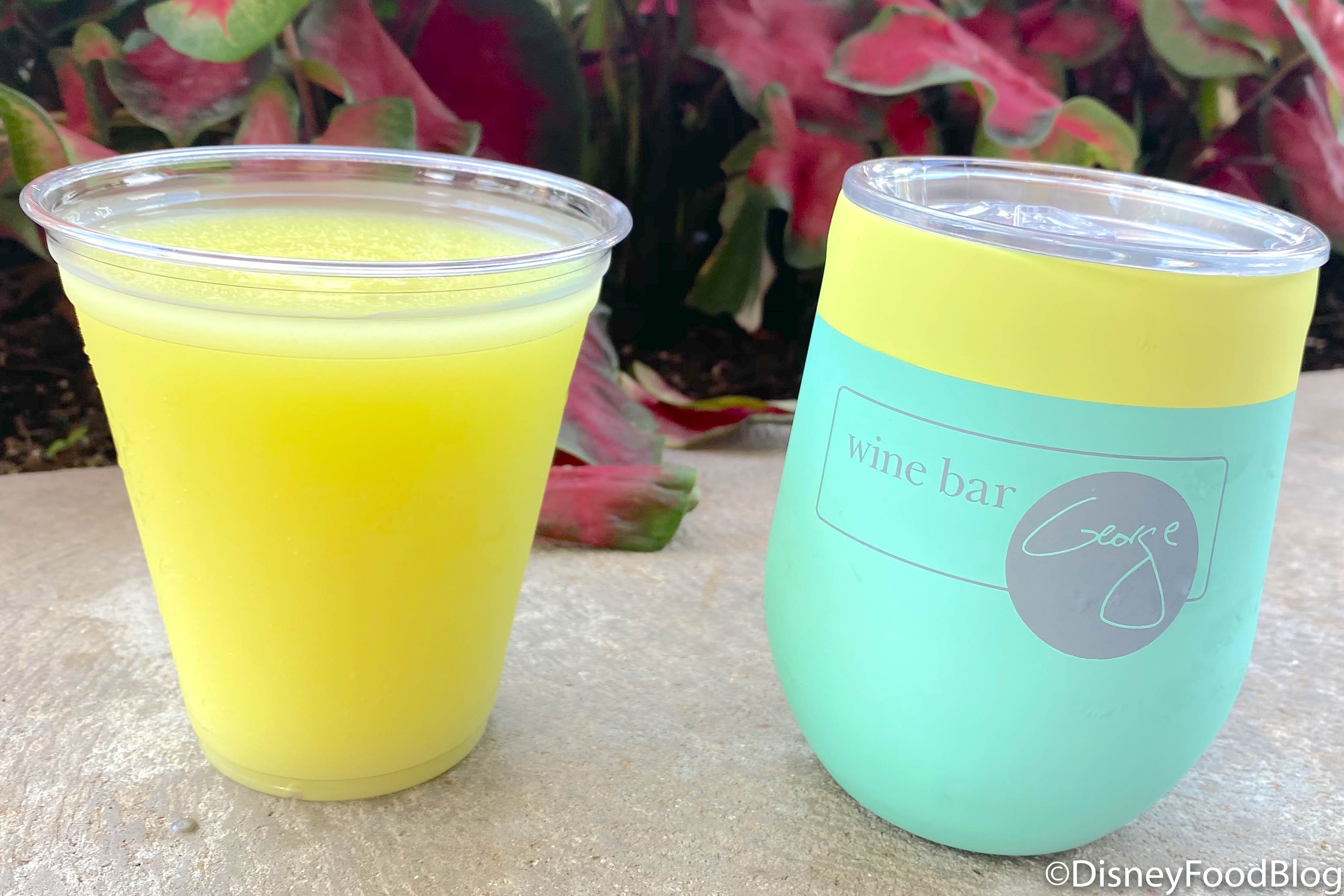 You usually can get a refill of your pick of a frozen drink like Froscato, Frosé, or Freaujolais (choosing is so hard!!) for $10 after you’ve purchased a Corkcicle (usually $13). The Basket used to refill your cup directly and give it back to you. However, with the recent health and safety procedures at Disney Springs, The Basket is now putting refills in a plastic cup instead of directly in your Corkcicle!
