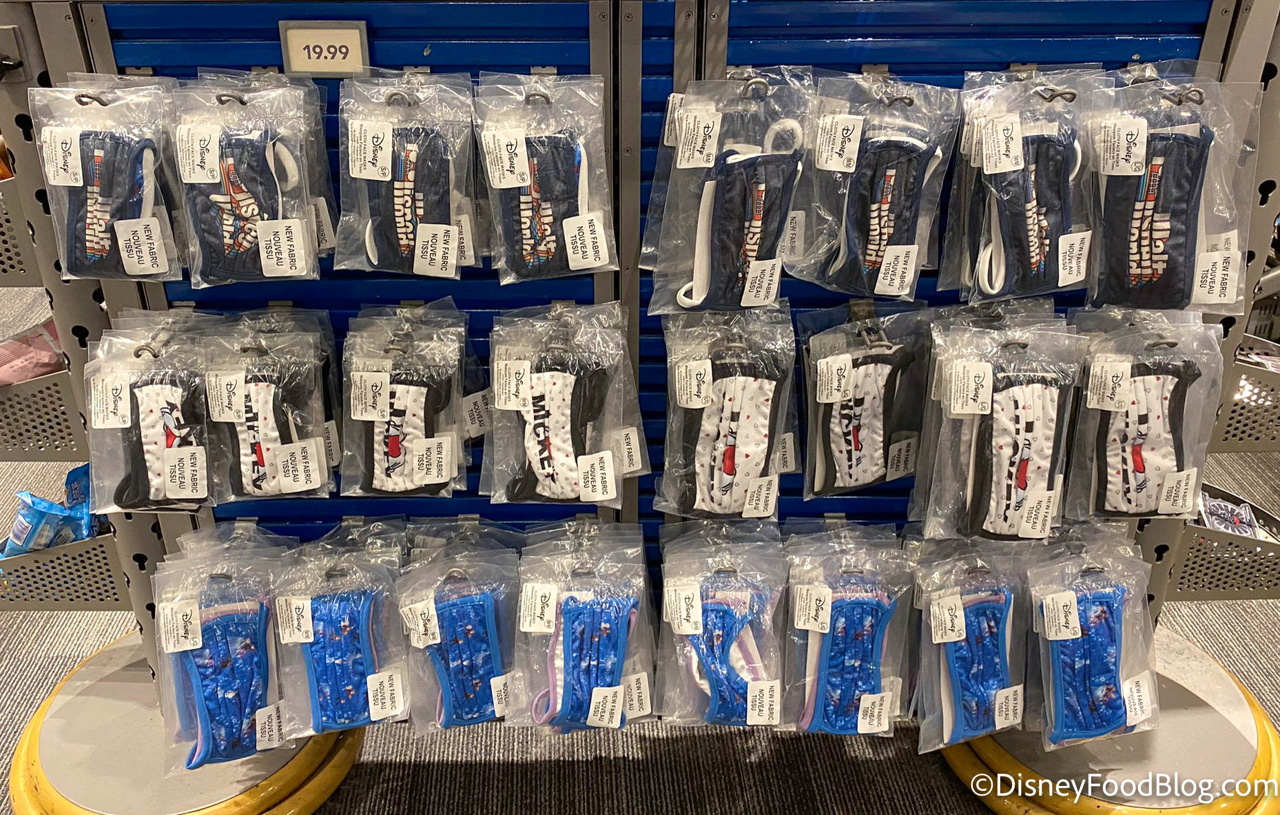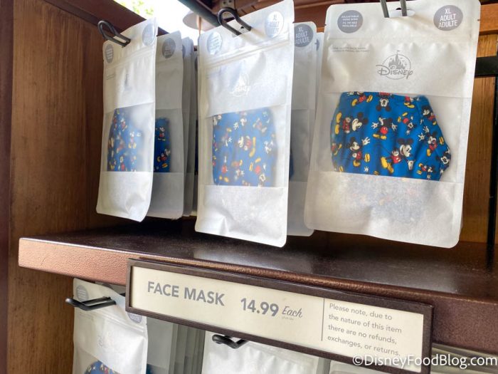 Face masks can be found at a variety of stores throughout the Disney theme parks, resorts, and Disney Springs. Previously, more general cloth masks were available (like the ones pictured below).
