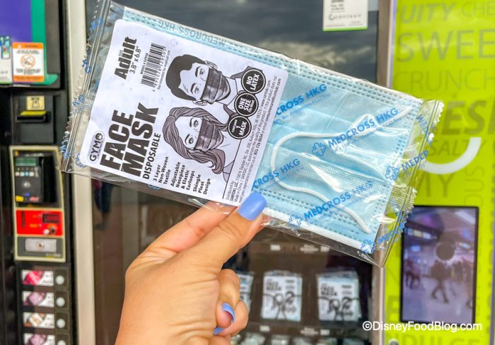 In some locations (especially in front of some of the parks or at Disney Springs), you may find a vending machine with disposable masks available. These will likely be more expensive than what you would pay at a local store or online, but they are available if you need them.