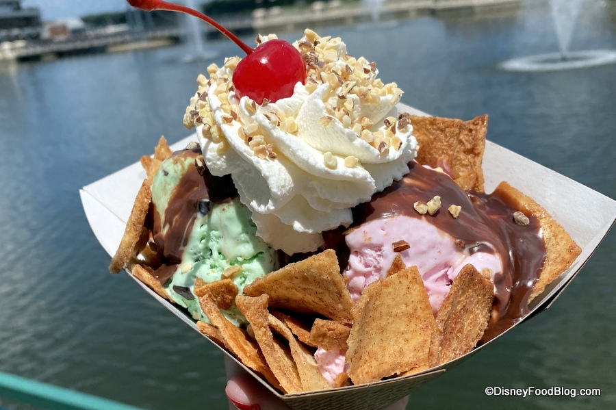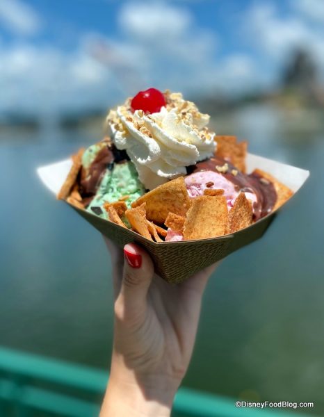 And they’ve done it again! Just when you think Ghirardelli couldn’t possibly come up with any more spectacular specialty sundaes… they DO! Ghirardelli is located in the Disney Springs Marketplace — where, by the way, you’ll also find Marketplace Snacks which is still serving up the fabulous Dole Whip Nachos.
