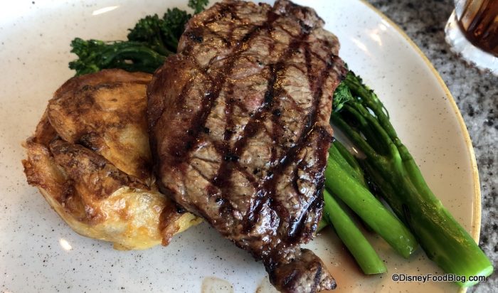 Over at Disney’s Wilderness Lodge, Whispering Canyon Cafe has also reduced its menu. House-smoked Salmon Frittata, Benedicts Traditional, Vegetable Two-Poached Eggs served atop House-made Buttermilk-Cheddar Biscuits, Flapjacks Bourbon-Maple Syrup, and Stone-ground Cheese Grits have been sliced off the breakfast options.