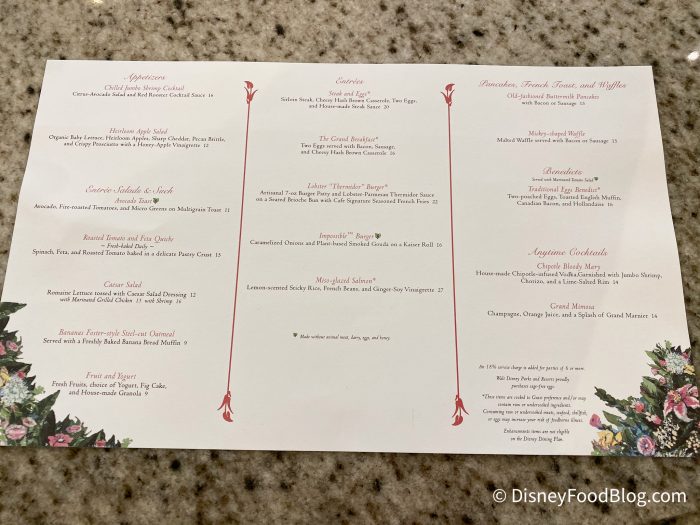 We noticed many menu items that we have enjoyed in the past, like the Floridian Pancakes and the Lobster Thermidor Burger, but today it was all about the QUICHE. Do keep in mind that they are offering a limited menu at this time and that beloved favorites like the Chicken and Waffles are currently unavailable.