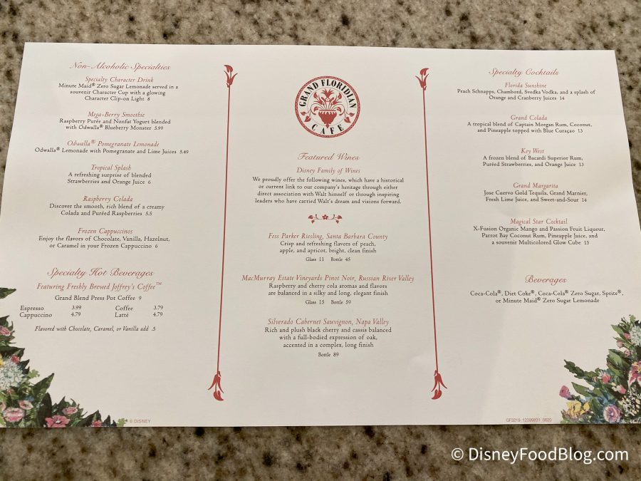 Grand Floridian Cafe has a QR Code menu too, but since the Disney World website was being unstable, our server grabbed us a paper menu just in case.
