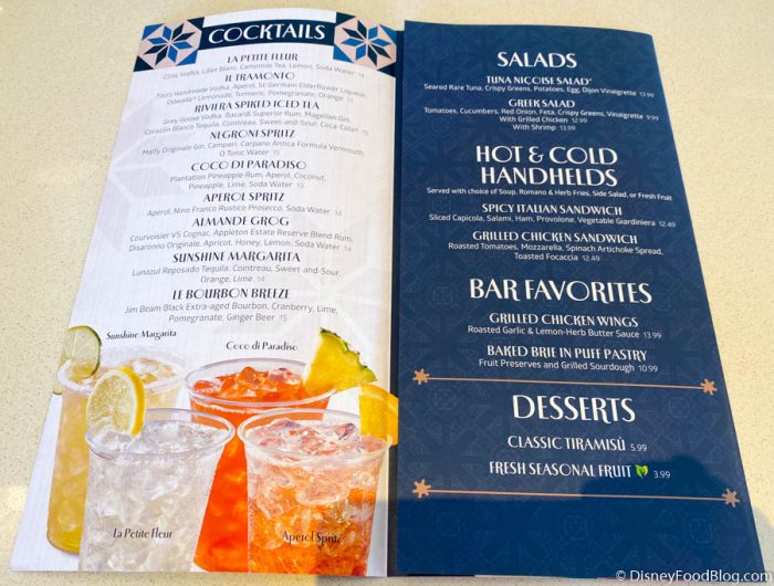 Like at Topolino’s Terrace, the menu was slightly limited. Unfortunately for us, this meant NO Monte Cristo. 🙁