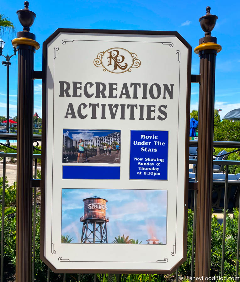 The only recreation posting was for a Movie Under the Stars screening on Sundays and Thursdays at 8:30PM.