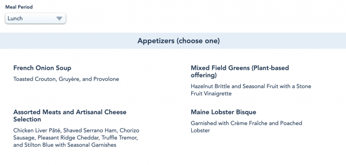 All of the offerings appear to be exactly the same between the lunch and dinner prix fixe menus for now, but we’ll let you know if anything changes! In the meantime, you can check out this great tip we’ve discovered for using Disney’s Park Pass system — click here to learn more!