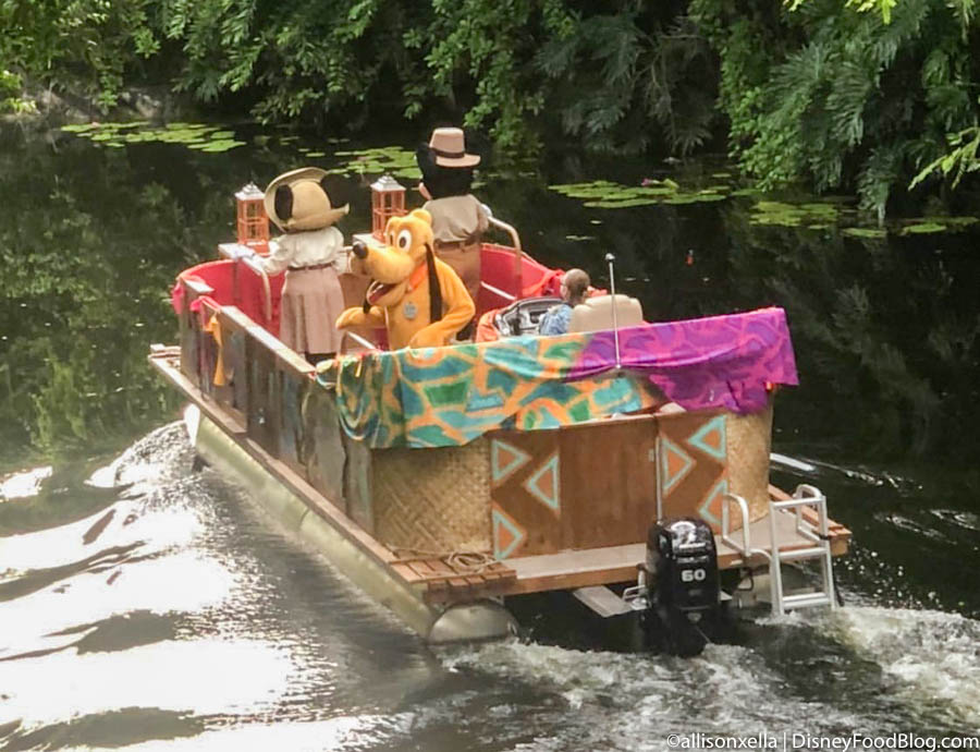 And although we didn’t have a chance to make it over to Disney’s Animal Kingdom yet, our reader @allisonxella on Instagram sent us this pic of Mickey, Minnie, and Pluto going for a boat ride! Ah — this is AMAZING!!! Watercraft and Disney characters?!? She also spotted Chip, Dale, and Goofy in their dino best floating by to music later in the day!