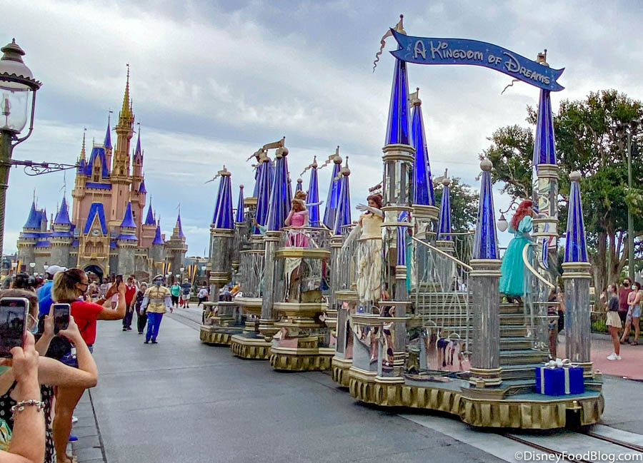 Originally, Disney gave us a list of Character Cavalcades to be on the lookout for throughout the day. We were told a Royal Princess Processional would be roaming Magic Kingdom’s parade route sporadically along with Tinker Bell, Goofy, Fantasyland Friends, Mickey-themed caravans. Performances would be unscheduled so that crowds wouldn’t congregate.