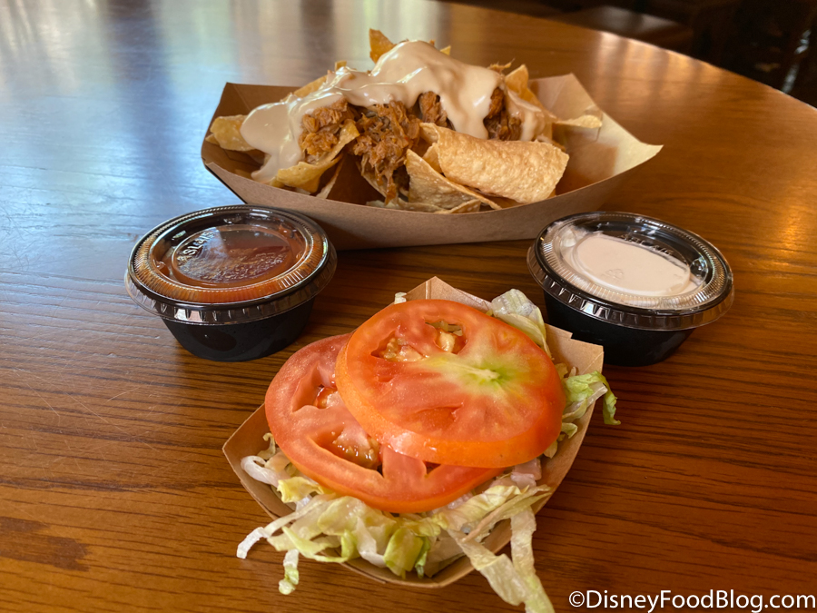 Again, guests have the option to add extras to your meal through the app! Our tomatoes came out a little wonky for some nachos, but our guess is that Disney is still working out all the kinks.