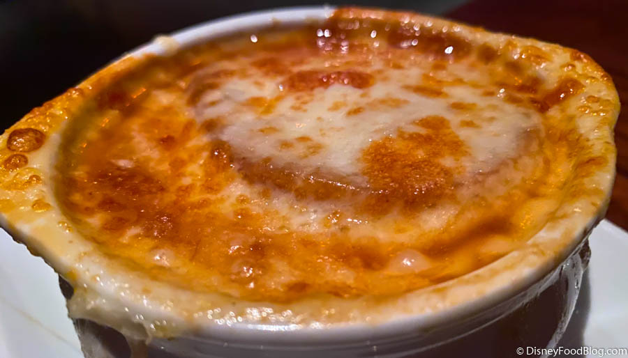 For our appetizer, we nabbed a few options. One was the French Onion Soup with toasted crouton, gruyere, and provolone. It was honestly great; just look at that melty cheese!
