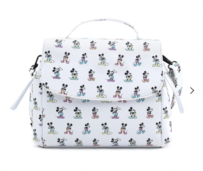 Look at Mickey striking a pose! The rainbow element is a bit more subtle as each Mickey is colored with a different shade of pastel colors. The small crossbody bag is $65.