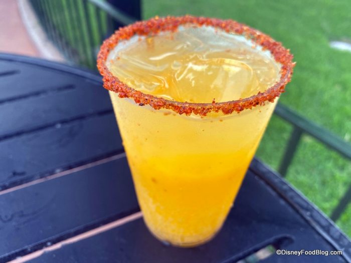 - Mango Smoky Margarita: Mango Purée, Mezcal, Applejack, Lime Juice, and Agave Nectar with a Tajín Chile-Lime Rim