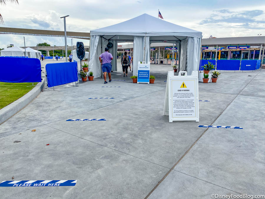 Since we’ve been back in the parks, the temperature screening portion of the entrance procedures actually goes by quickly as guests are moved along in an orderly fashion. While temperature checks being a part of the new normal may seem a bit weird to think about, they have been surprisingly simple to go through (and we don’t really mind them all that much).