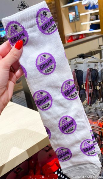 Alright now for the BULK of new stuff at World of Disney! First up, we spotted these super cute new sock patterns with these Up Grape Soda Socks…