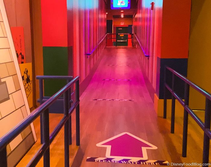 As we expected, the queue had the usual health measures. Markers were placed throughout to keep guests distanced at 6-foot intervals.
