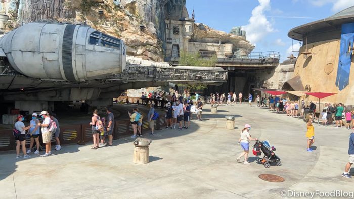 Afterward, we headed back to Star Wars: Galaxy’s Edge where we ran into a sea of humanity. It actually looks way. worse than it was since guests were physically distancing themselves, but after experiencing some calmer parts of the park, this area might feel a little jarring.