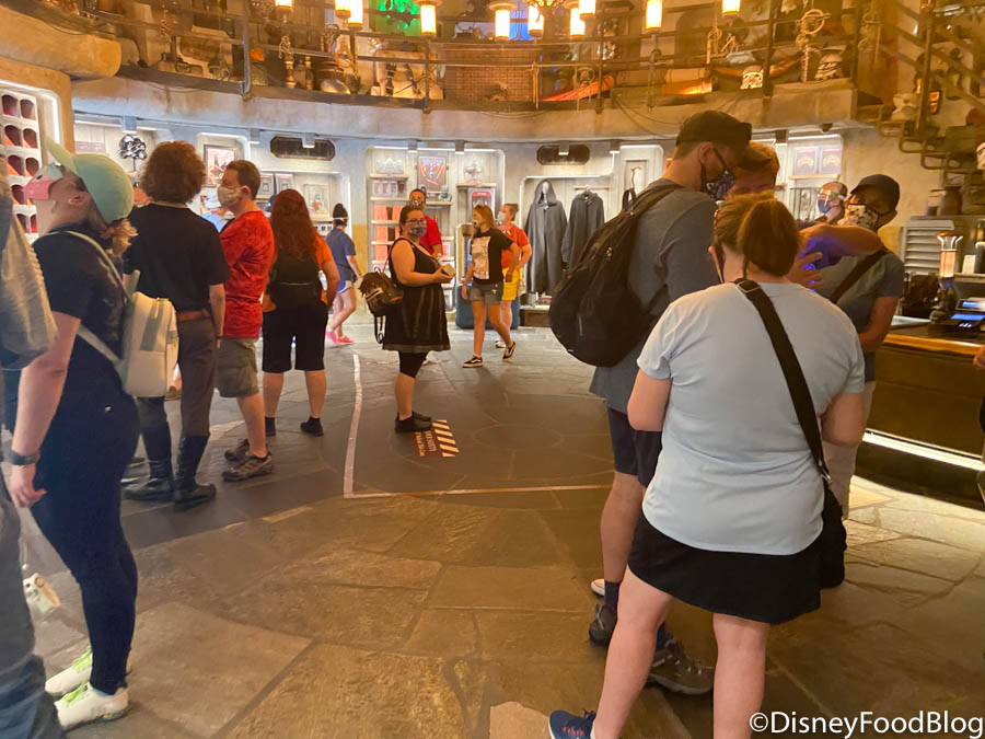 The Black Spire Outpost’s marketplace is now closed off and each party now waits on a marker. Cast Members will let the next party in once another party leaves. Each store that is open in this area (up to Ronto Roasters) will only allow one party into the store at a time.
