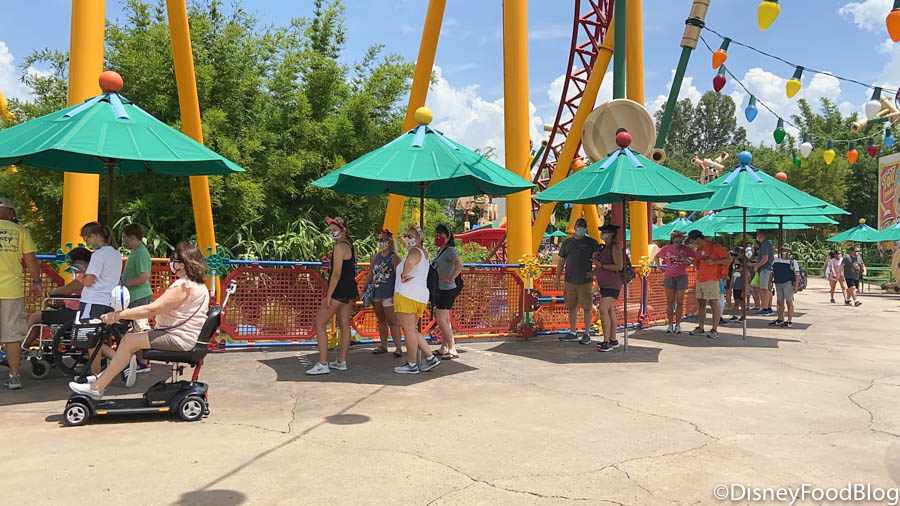 Mickey and Minnie’s Runaway Railway was showing a 60-minute wait right around 10AM. Toy Story Land also longer wait times as well. Slinky Dog Dash was up to a 65-minute wait.