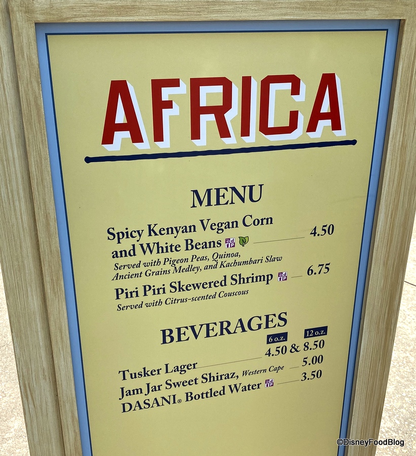 The Africa booth has a small menu with just two food items and two drinks. But, hey, the saying is quality over quantity!