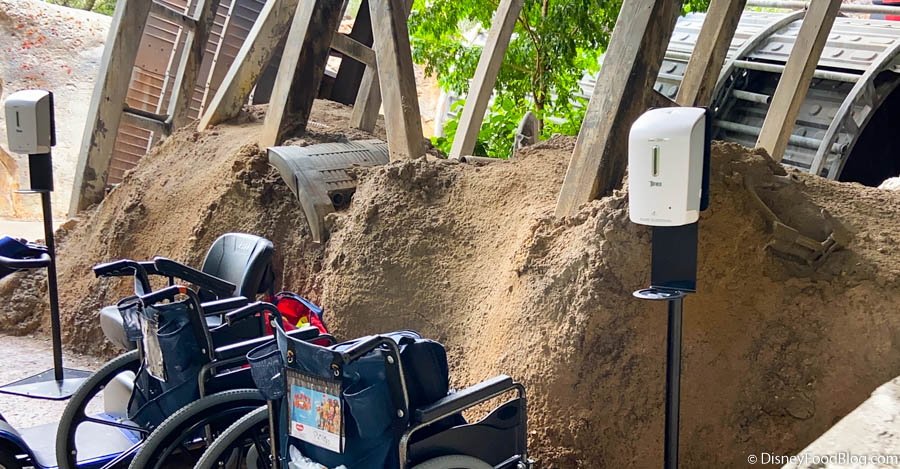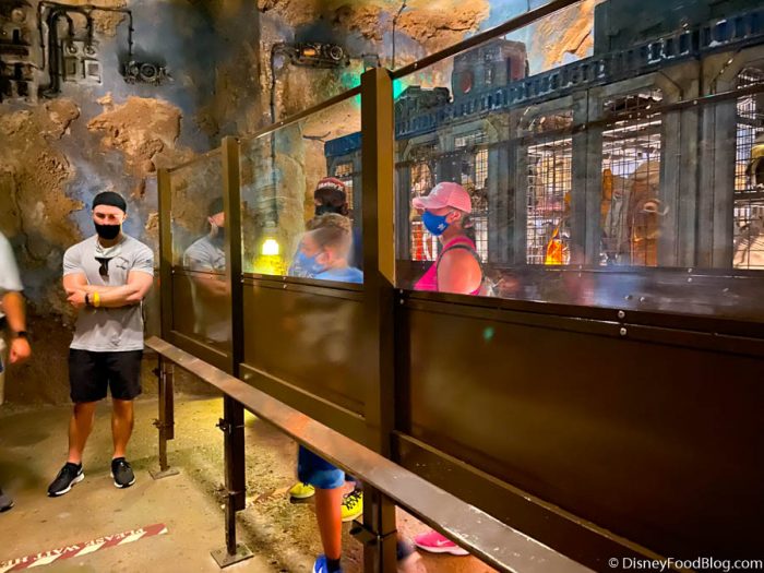 Like other attractions in the reopened parks, Rise of Resistance features an altered queue to support physical distancing. Before heading into the ride, we noted hand sanitizer stations like we’ve seen in tons of other places around the parks.