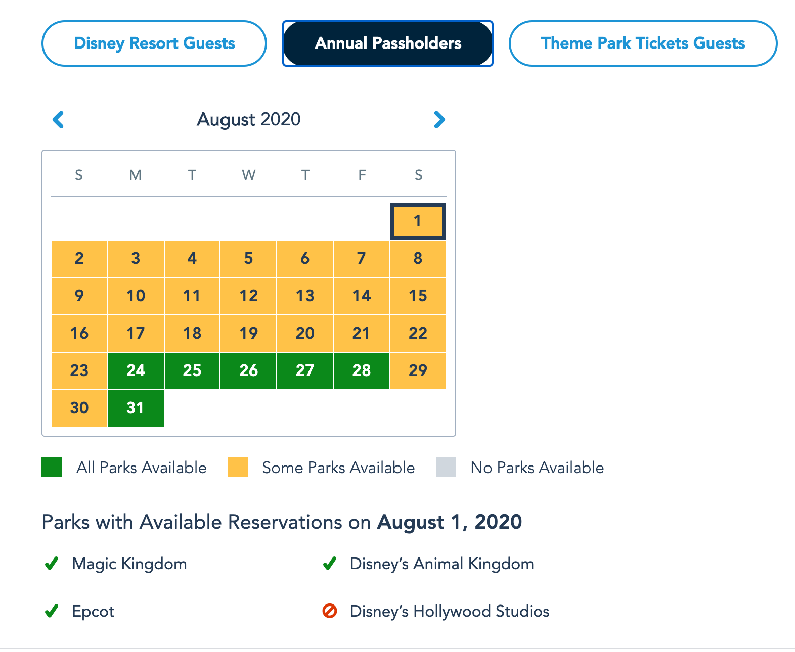 Just a few days ago, there was NO availability for Passholders in July — that means no chance of getting into ANY park on ANY day. August had some options still, but days (especially weekends) were going quick.
