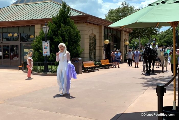 Since nighttime spectaculars and character meet and greets have been temporarily postponed at Disney World, EPCOT has several mini-parades throughout the day like the Frozen Promenade we spotted at the World Showcase!