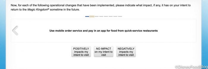 The survey also asked about some of the dining procedures now that Mobile Order is primarily being used in quick-service locations and character dining is limited to only a few places around the parks and resorts.