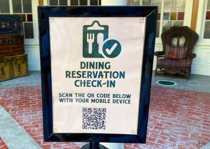One change we did NOT see coming but are super down with is the new Mobile Dine Check-In! Essentially Mobile Dine Check-In is a contactless way of checking in for your dining reservation. Skipping the host stand entirely, you simply check in on My Disney Experience when you arrive at the restaurant for your dining reservation, or you can scan a QR code located in the lobby of the restaurant.