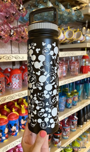 And you’ll probably want to tie up your hair as the days are HOT here in Central Florida right now! And that’s where this new Mickey Reusable Water Bottle that we found can come in handy…