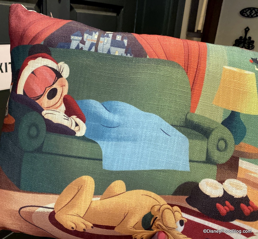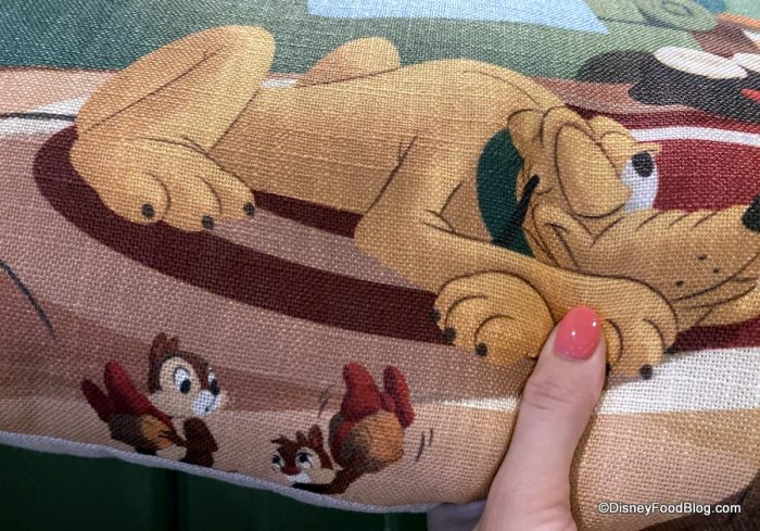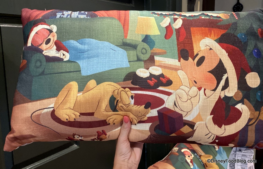 A little early? Nope, not when it’s Christmas in July! And it’s never too early when you’re at Ye Olde Christmas Shoppe in Liberty Square where we found some new holiday merchandise! The other side of the pillow pictured above ($34.99) features a festive scene with Santa Mickey paying a visit to some very special pals…