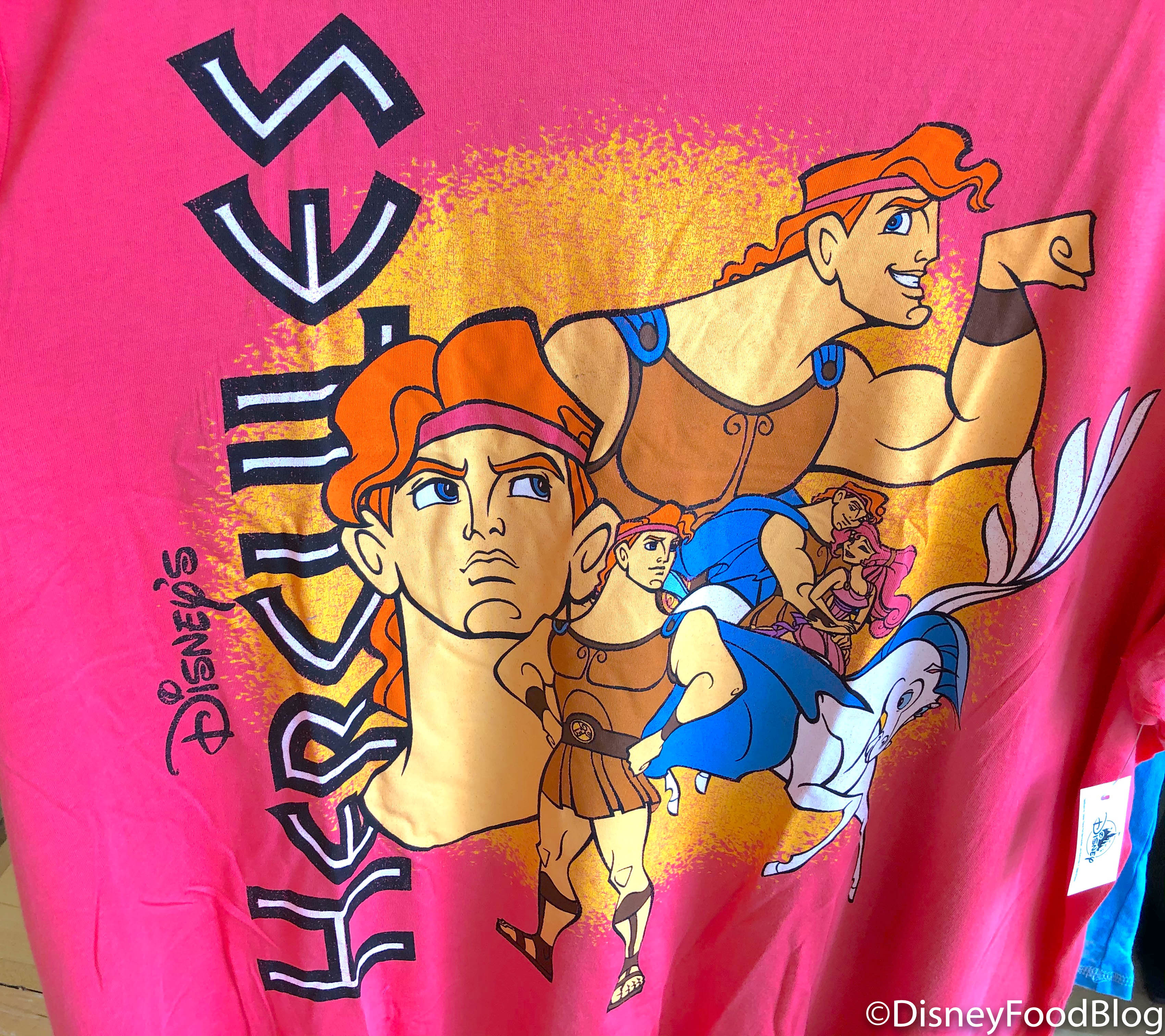 The red shirt has different images of Hercules looking like a hunk alongside his best pal Pegasus and lady love Meg for $36.99!