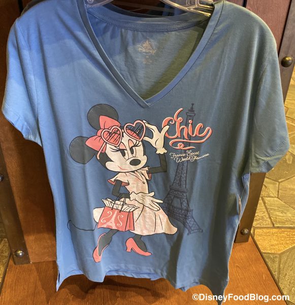 Here she is again, on the “Oh La La” Minnie Shirt for $29.99.