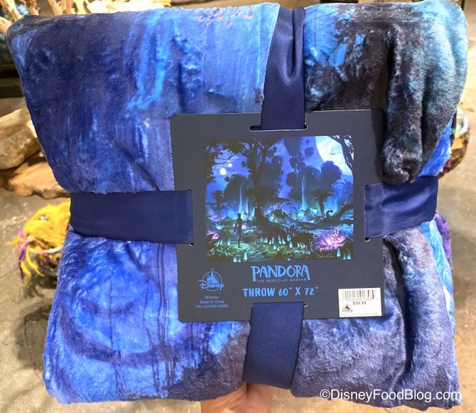 First up – we spotted this soft and fluffy Pandora Throw featuring the bioluminescent plants, floating mountains, banshees, and even a Na’vi to guide us on our journey through this beautiful planet!