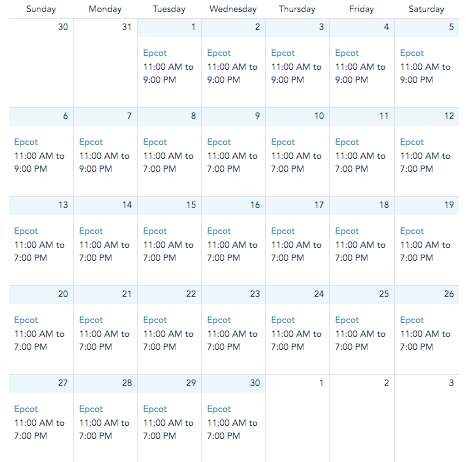 The park hours for EPCOT will be 11AM-7PM, reduced from the previous hours of 11AM-9PM.