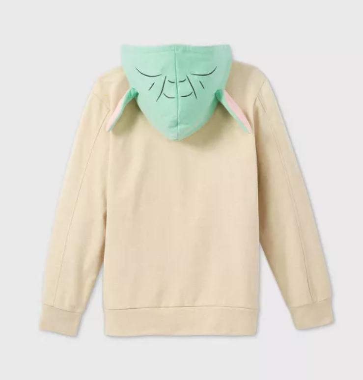 The next time you’re shopping online at Target or visiting the store for snacks, drinks, or even a bunch of Disney merchandise, you’re going to want to snag the adorable Baby Yoda Sweater! The sweater is the tan color of Baby Yoda’s little robes with a frog zipper down the front (of course). But, our FAVORITE part are the ears that stick out for an extra cute look while you walk around Star Wars: Galaxy’s Edge!