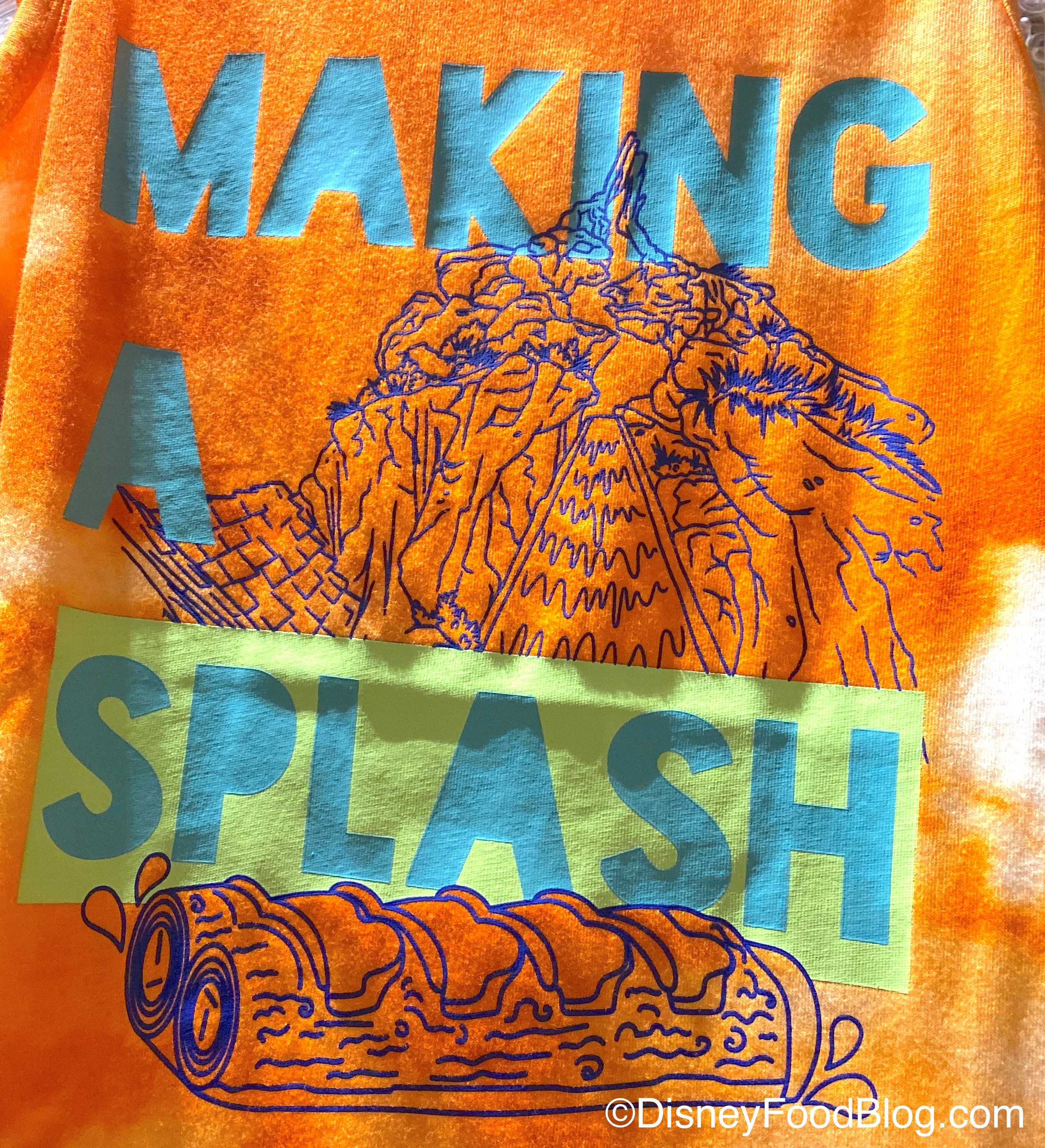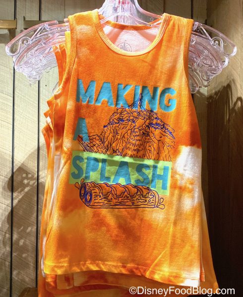 We stopped by Splashdown Photos, the gift shop near the exit of Splash Mountain, and found a new Splash Mountain Kids Tank Top featuring some bright orange tie-dye!
