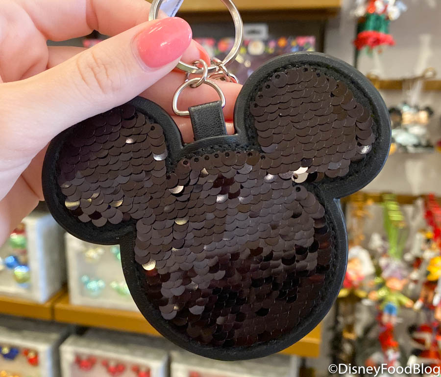 You can never have too many keychains, and these new Mickey and Minnie reverse sequin cuties are definitely coming home with us! Each of ’em costs $14.99 and we also spotted them Mickey’s Legends of Hollywood! Here’s the Mickey keychain with lots of shimmery sequins on its front…