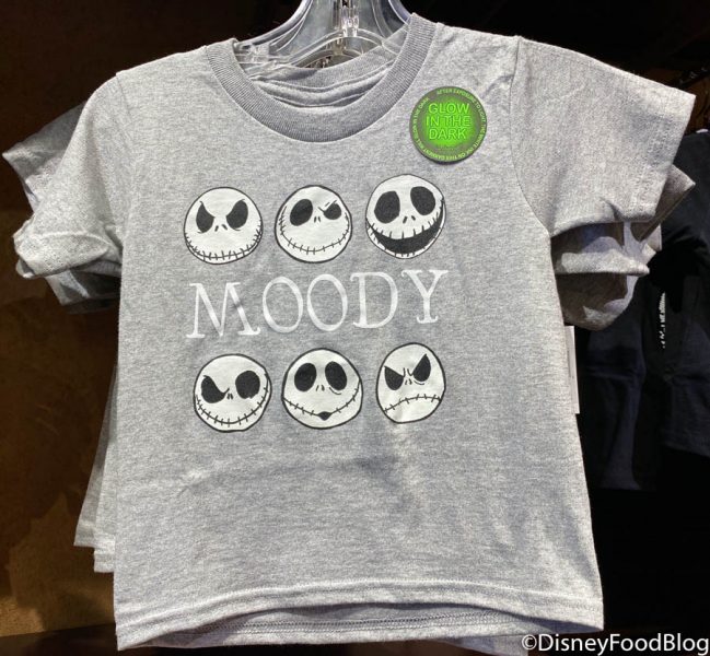 We also saw this cool “Moody” Nightmare Before Christmas kids’ shirt which GLOWS IN THE DARK for $19.99!