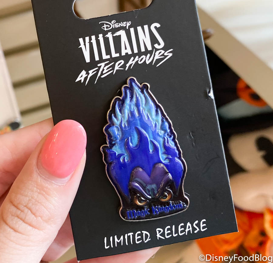 Hades was in da house yesterday! We spotted his long blazing blue locks on the Villains After Hours pin for $17.99!
