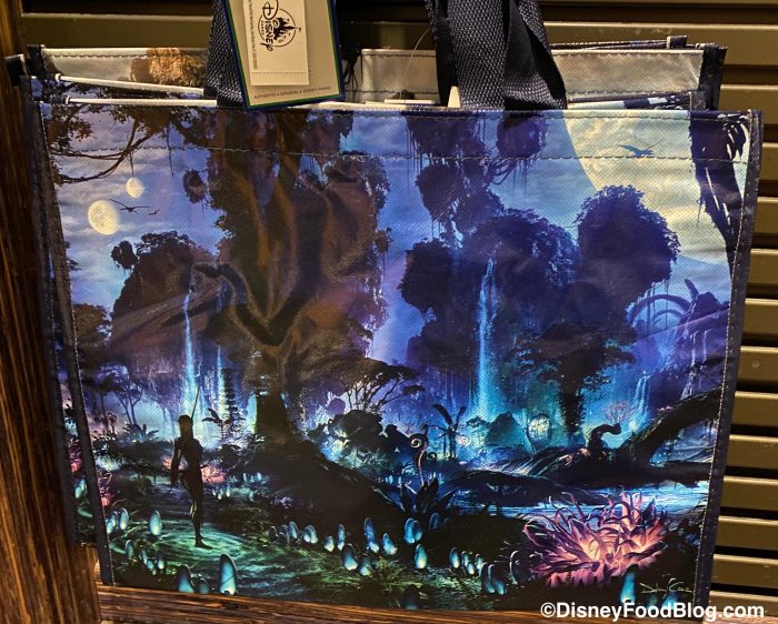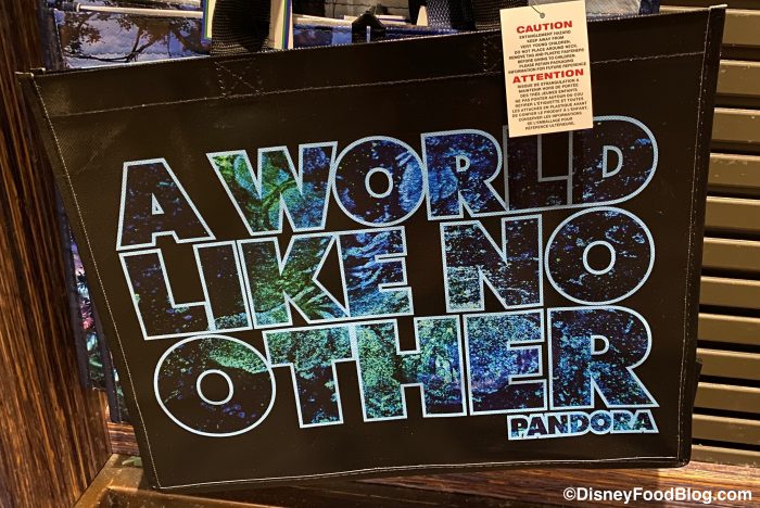 …and the other side says “a world like no other” with a pattern that reminds us of the bioluminescent pathways throughout the land! You can take home this tote for $5.99.