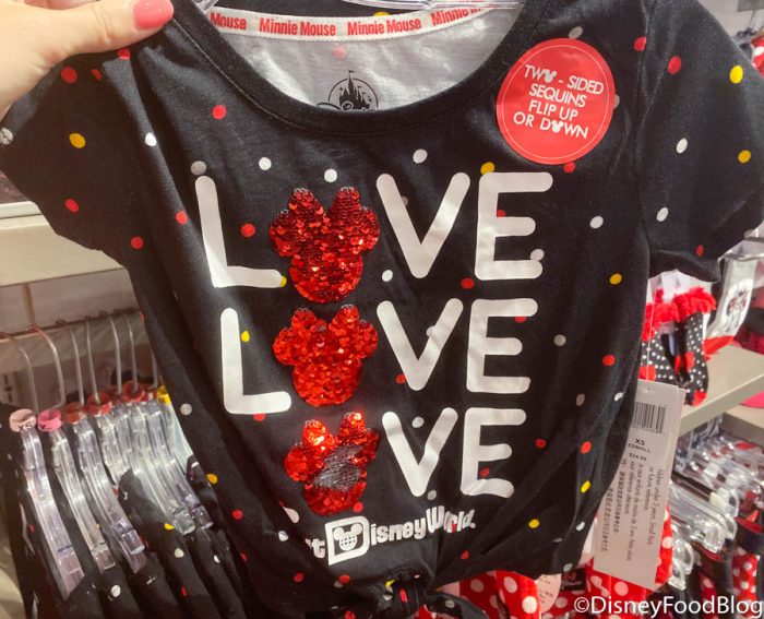 And we LOVE, LOVE, LOVE this cute Minnie Mouse Youth Shirt which has colorful polka dots AND reversible sequins! Pick this one up for $24.99!