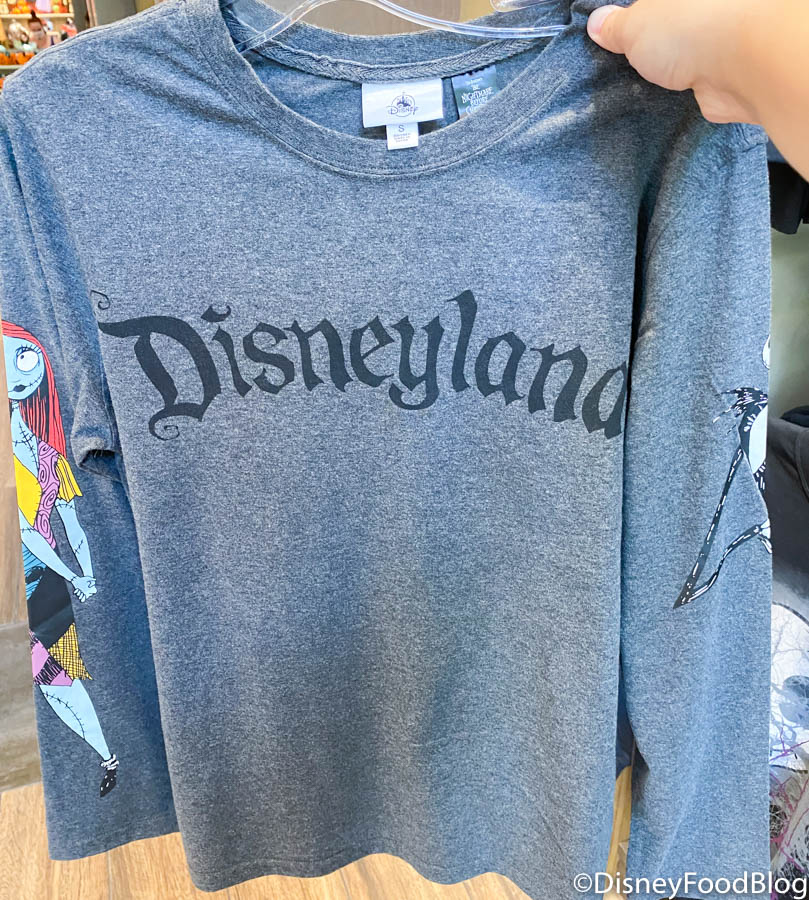 And over at World of Disney, we spotted more Nightmare Before Christmas stuff! Even though the wait was about an hour to get in, it was worth it to find this new Disneyland long sleeve shirt for $39.99! We love the Tim Burton-esque lettering on its front…