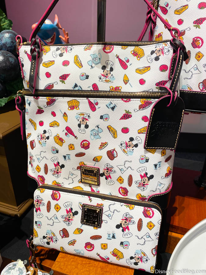 Three Dooney and Bourke bags will be available in special Food and Wine festival prints, which include Chef Mickey and Chef Minnie surrounded by all sorts of yummy treats! The Dooney and Bourke collection won’t be dropping on September 1st with the rest of the Food & Wine merch and we’re not sure when it will. On the bright side, there will be an Annual Passholder bag and a Dooney & Bourke MagicBand in addition to what we saw today!