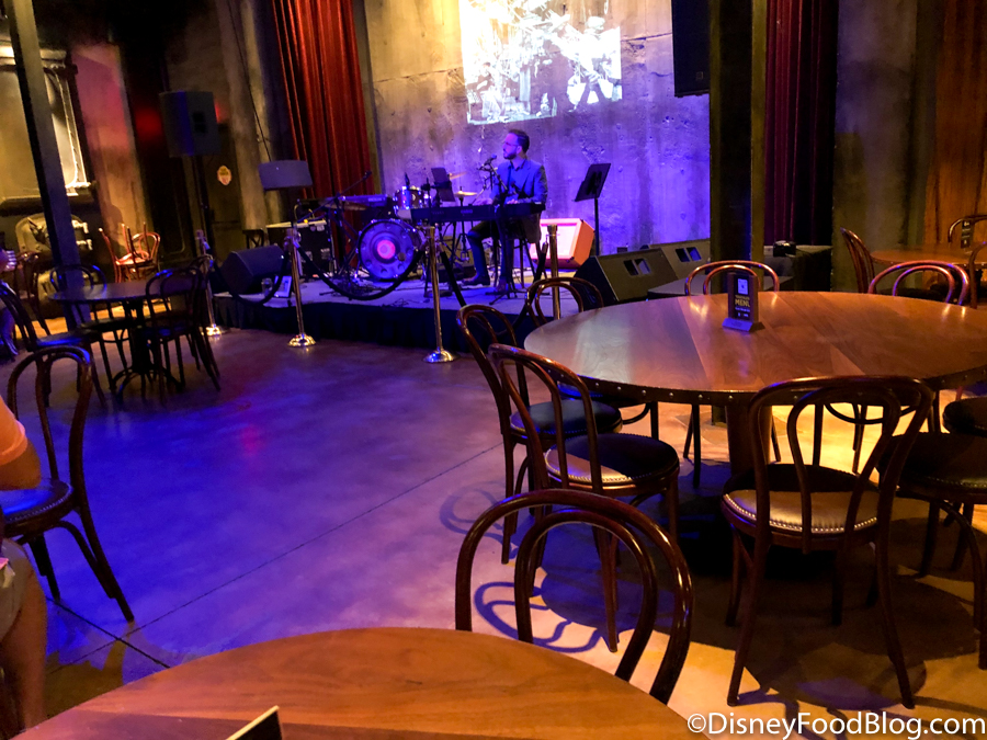 Our predictions were mostly correct. The nightly cabaret is currently not running. Our server explained to us that the full cabaret show will “most likely not be available for a long time.” He did note that live music still plays every night, and consists of a soloist or trio.