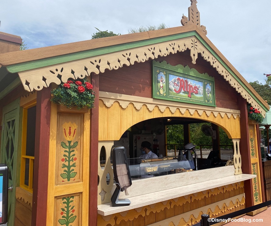 The Alps is following the same safety precautions as the other booths in the World Showcase with distancing markers, line dividers, hand-sanitizer stations, and plexiglass barriers.