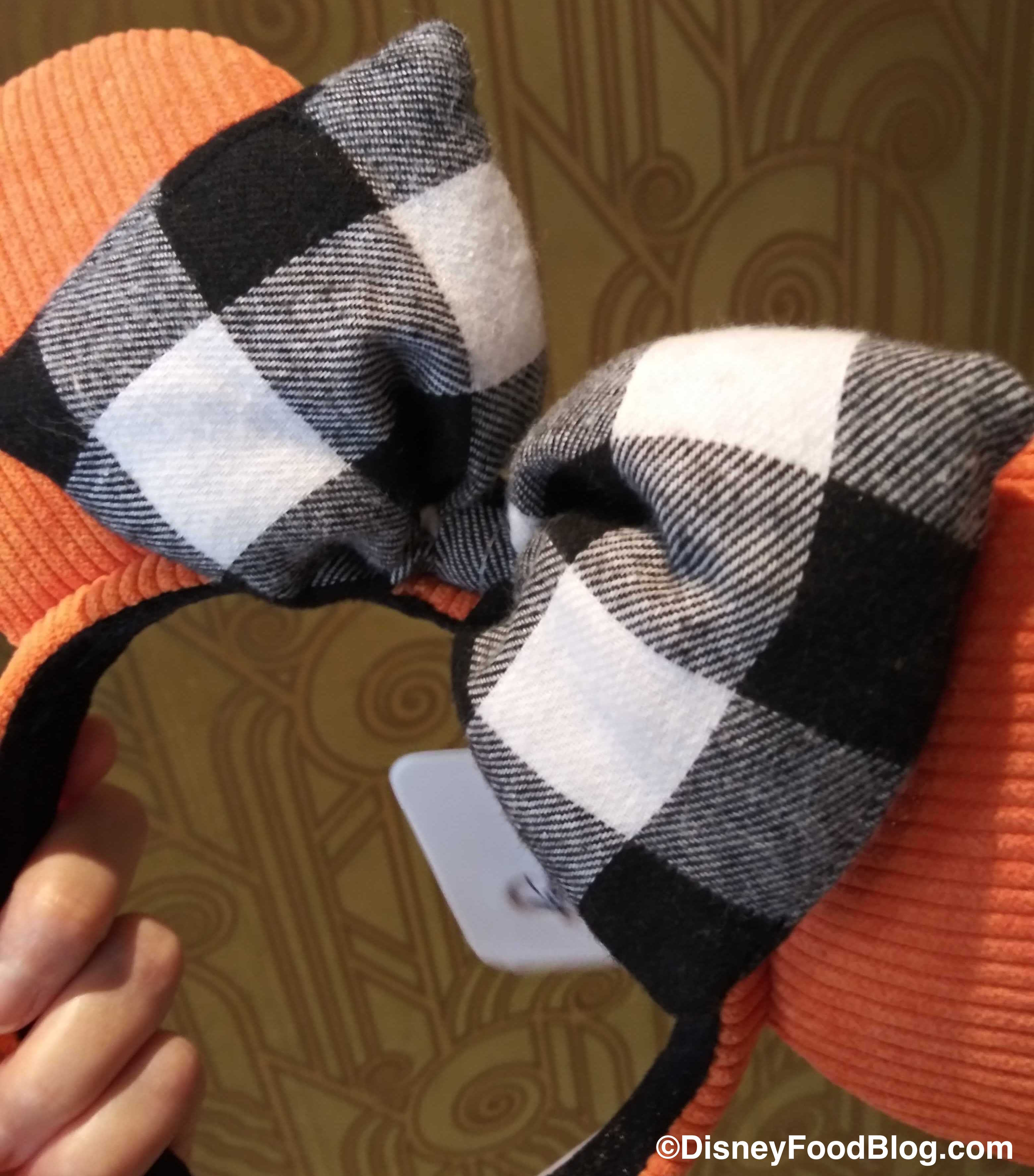 The flannel bow combined with the corduroy ears is practically a cornucopia of fall vibes! The Orange and Plaid Minnie Ears are also available for $29.99.