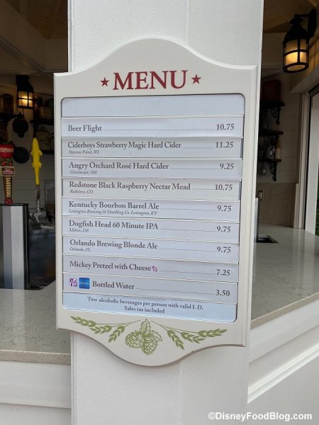 But, if you’re craving that beer flight in EPCOT (we are), the Block and Hans flight comes with an Ale, IPA, Orlando Brewing Blonde Ale, and Angry Orchard Rosé Hard Cider for $10.75.