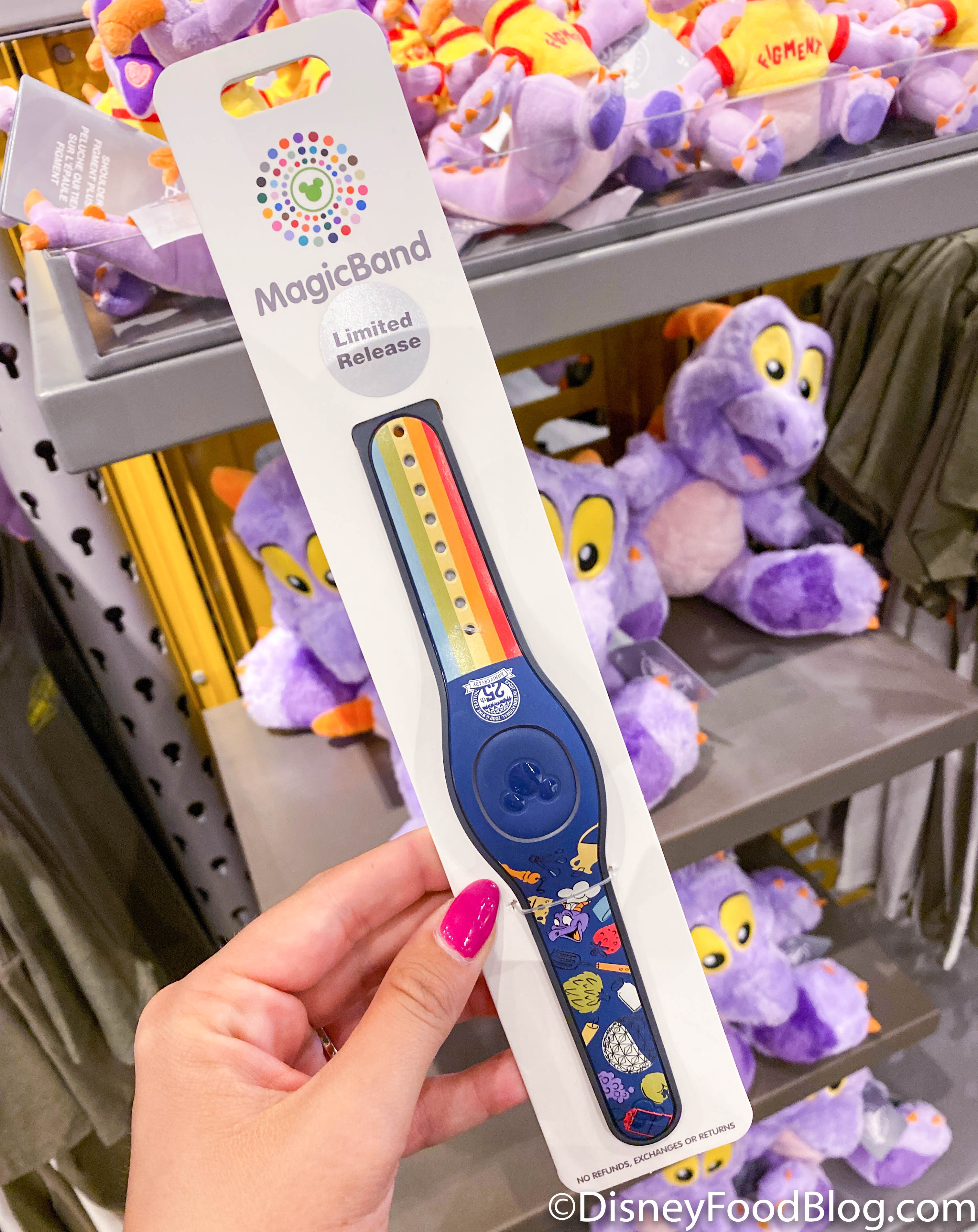 Last week, we shared a first look at all of the fun 2020 EPCOT International Food & Wine Festival merchandise that would be released soon (featuring LOTS of Figment merch). Today, we found one of the new festival merchandise items — a limited release MagicBand featuring Figment (and food!!)