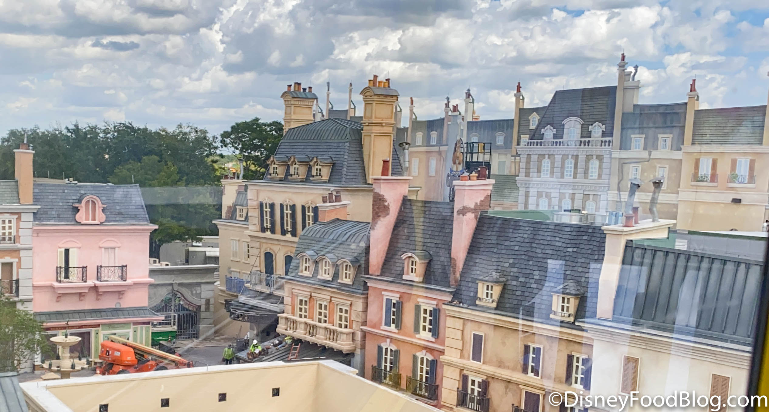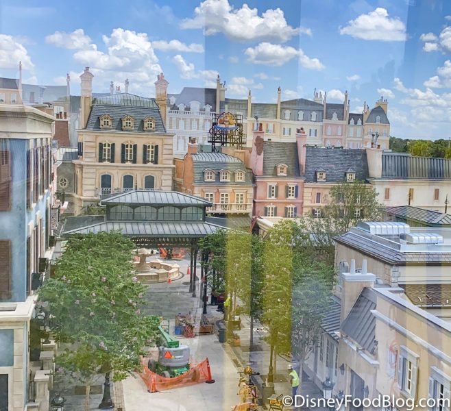 From new rides to new pylons, we’re really looking forward to seeing all of the new experiences that will eventually be available at EPCOT. Just yesterday, we flew past EPCOT in the Disney Skyliner and got a peek at the construction going on in the France pavilion.
